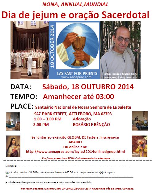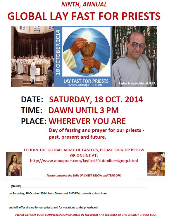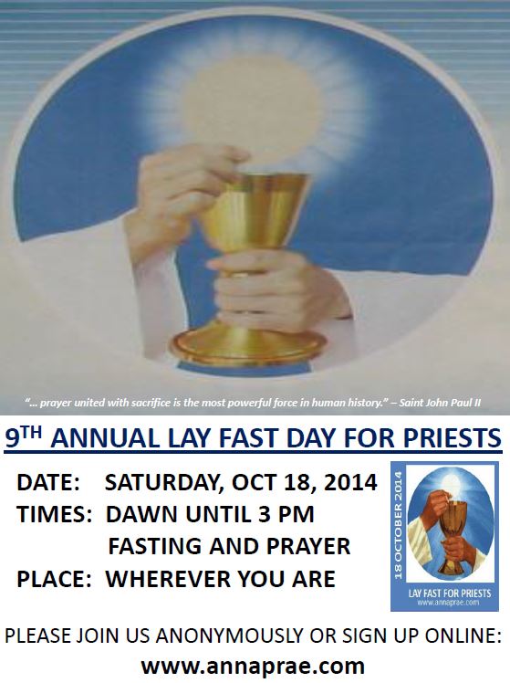 LAY DAY OF FAST FOR PRIESTS - SATURDAY, 18 OCTOBER 2014